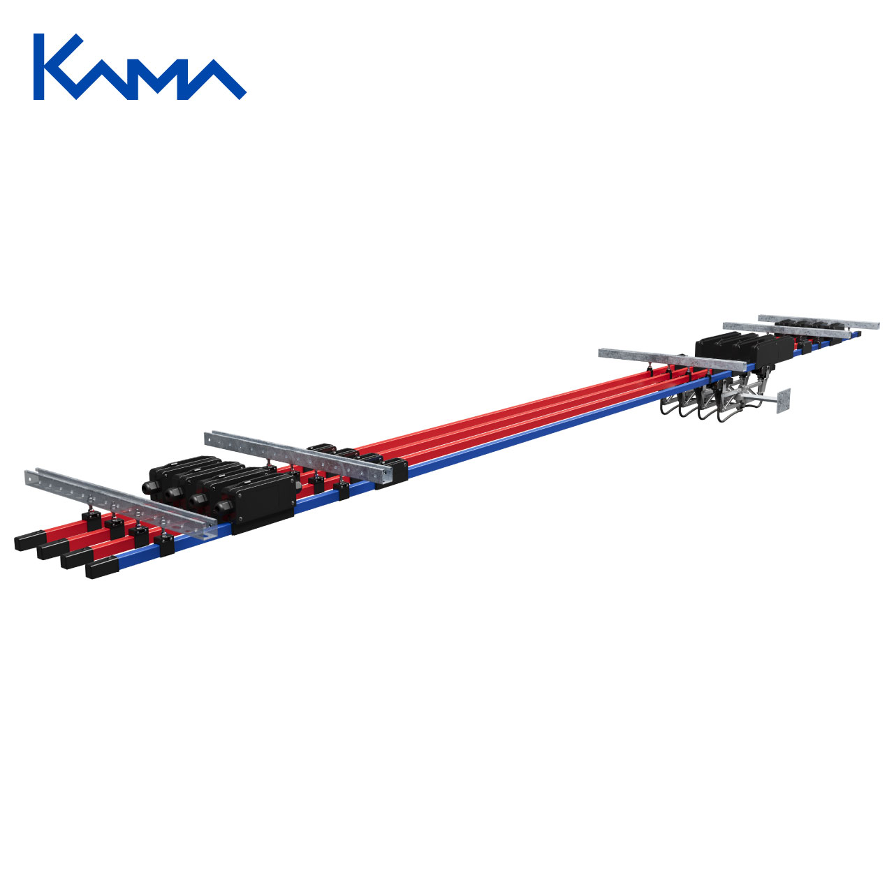 Изолированный контактный рельс КАМЕХ КМ-10М предназначен для бесперебойной передачи электроэнергии к подвижным механизмам с номинальным током до 630 А. Конструкция включает линии из ИКР, объединяющиеся в многолинейную систему. Медный проводник обладает хорошей проводимостью и выдерживает большие токовые нагрузки. Внешне проводник защищен изолирующей оболочкой из ПВХ.