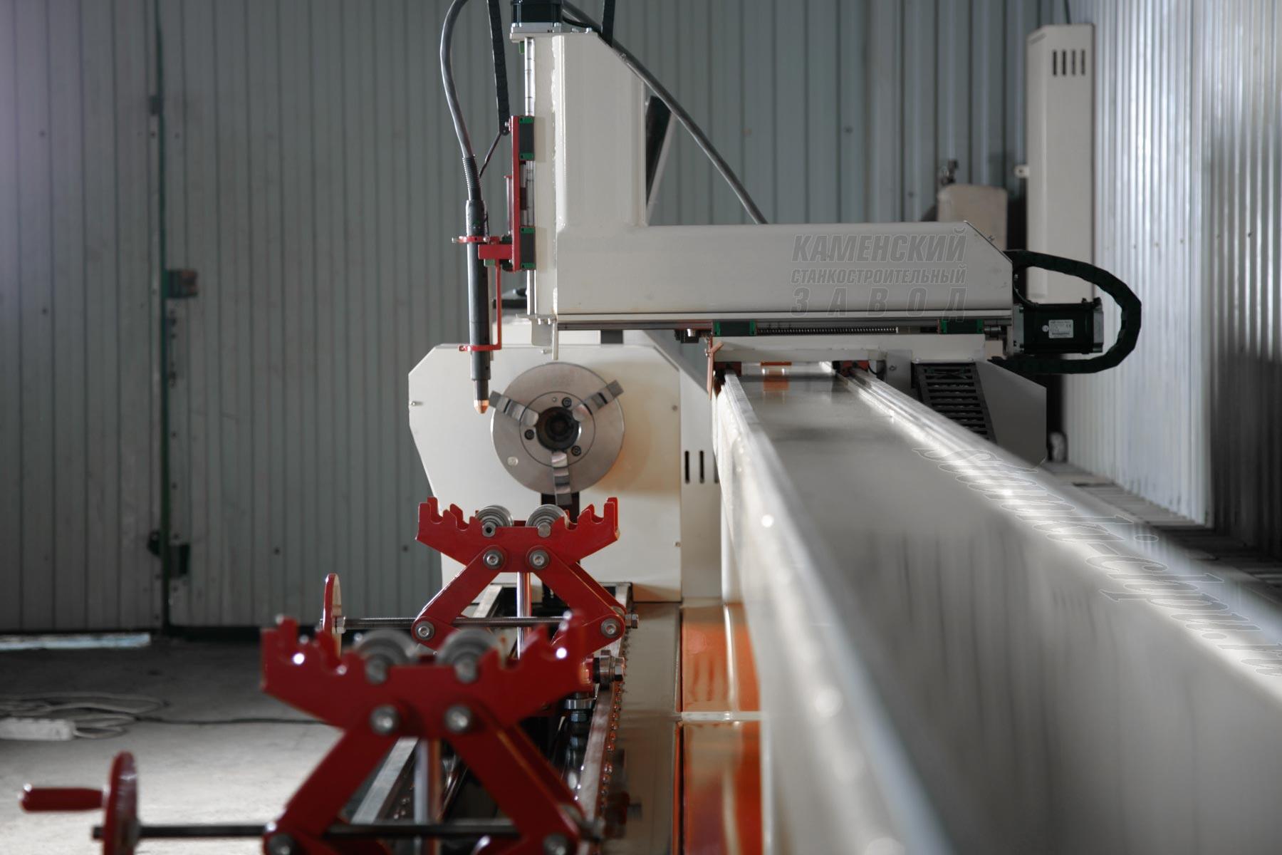 Станок ЧПУ плазменной резки CNC-6000P предназначен для резки стальных изделий выоской точности. Особенностью данного станка является наличие 4-й координаты, что позволяет выполнять обработку тел вращения.
